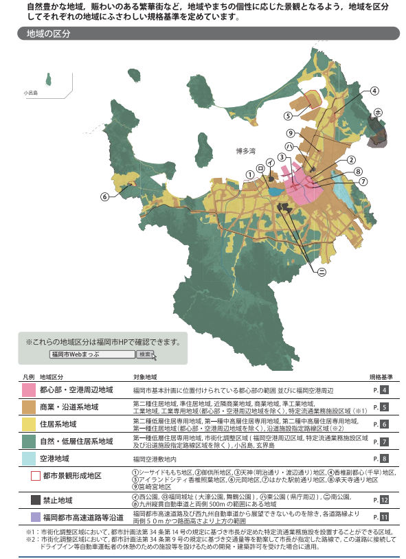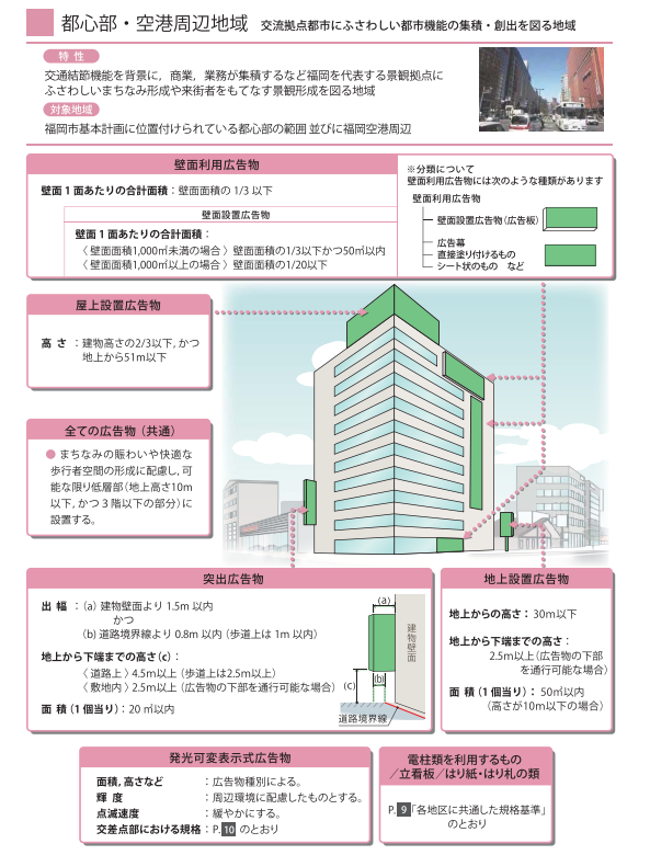 例えば、「都心部・空港周辺地域」であれば、以下のような基準を守って広告物を掲出する必要があります。