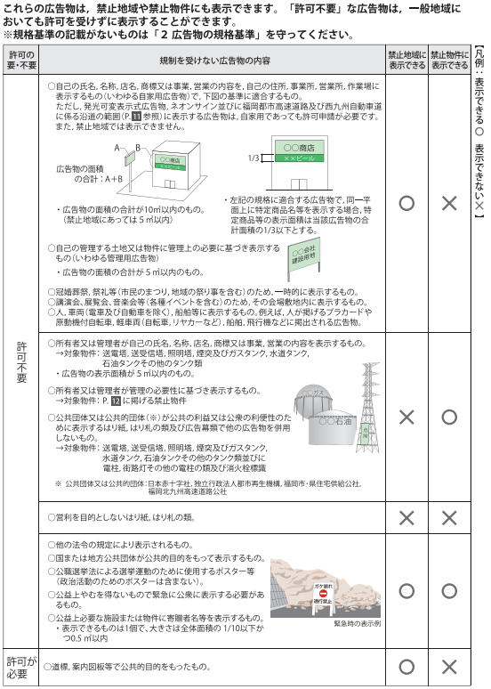 ただし、地域によっては、例えば広告面積が10㎡以下の場合は許可不要といった例外なども存在したりします。
