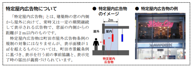 例外パターンとして、建物の窓の内側に広告物を貼付けしている場合は、屋外広告物とみなさないケースもあります。