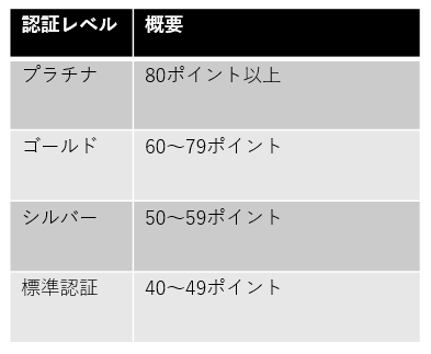 認証レベルは4段階で、最高位はプラチナ(80点以上)、次いでゴールド(60〜79点)、