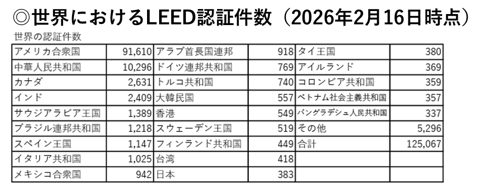 出典:グラフで見るLEEDとWELLの今 2026年2月 | Green Building Japan