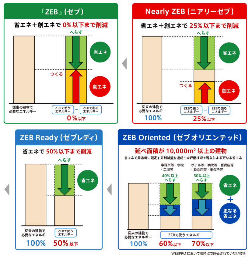 Nearly ZEB、ZEB Ready、ZEB Oriented について